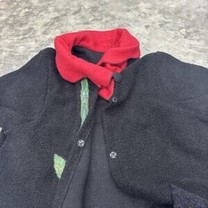 Wearable Art Cardigan Zip Wool Sweater Flower Poppy High Collar Art To Wear Red