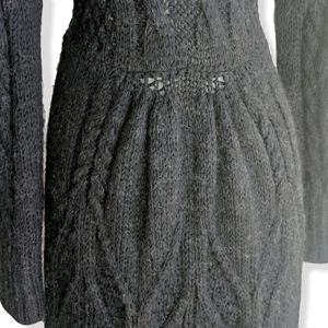 Wearable Art! Charcoal gray, textured wool & mohair long cardigan coat NWOT