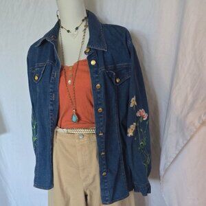 Wearable Art brand Jean Jacket with embroidered sleeves, size Medium