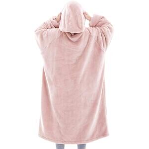 Wearable Blanket Fleece Pink Sweatshirt Cozy Giant Hoodie Pocket Adult One Size