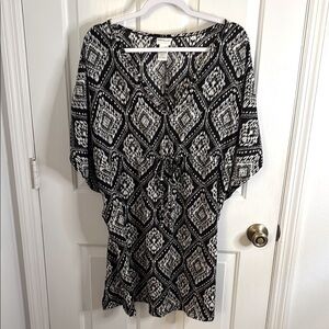 Wearabouts Black & White Geometric Woman’s Bathing Suit Cover Up, Tie Waist