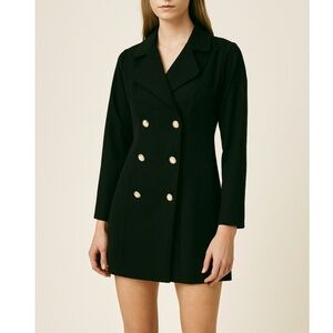 Wearever black mini long sleeves suit dress Size L Double Breast Gold Buttons