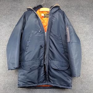 Weather Caster Mens Parka Jacket Blue Small Long Sleeve Quilted Lined Vegan Fur
