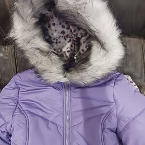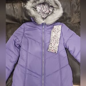 Weather Tamer Girls Purple Coat with Faux Fur Trim & Matching Headband