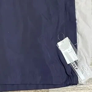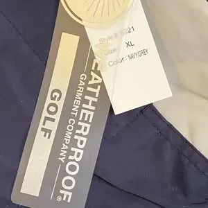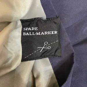 Includes two snap-closure ball marker holders at the hem (a great golf-specific detail). Neutral navy blue with light gray contrast panels on the sides and sleeves.