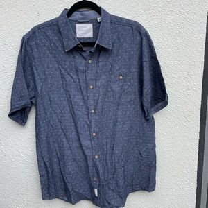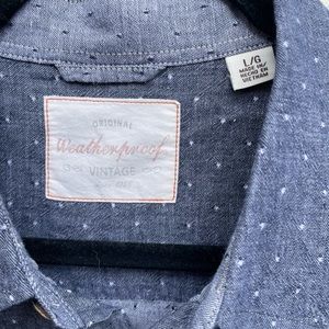 Great quality casual button up shirt by Weatherproof! Navy blue lightweight material with the cool white dots weaved in. Size L, great condition no flaws. Make me an offer!
