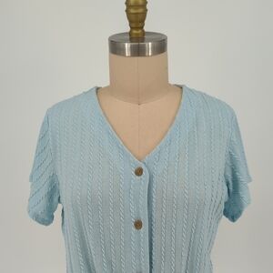 Weatherproof Cable Knit Knot Sweater Top Cardigan Blue L preppy cottagecore