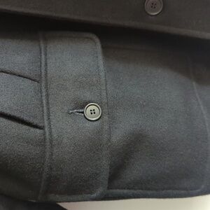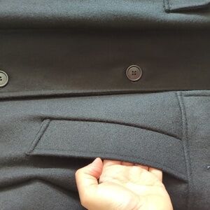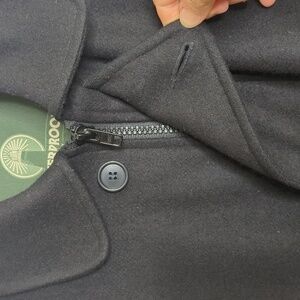 Excellent quality full zip front pea coat with buttons over zipper.