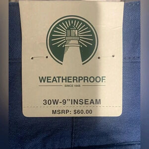 Weatherproof Flat Front Chino Shorts. Navy. 30 waist/9” inseam. NWT. 100% cotton.