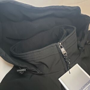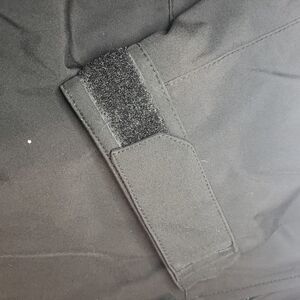 Two side pockets with zipper closures One inside chest pocket with hook and loop closure