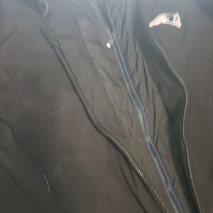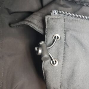 Full-length zip front closure with inner fleece-lined collar and zipper