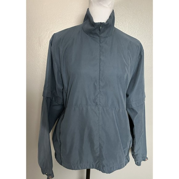 Weatherproof Garment Company Mens Size M Blue Jacket Golf Pullover Lined 1/4 Zip. Pull string adjustable waist and detachable sleeves. Water and wind resistant.