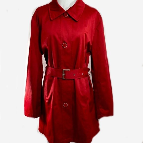 Weatherproof Garment Co Red large Raincoat Buttons Comes With Belt