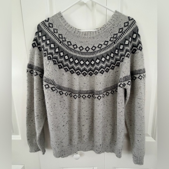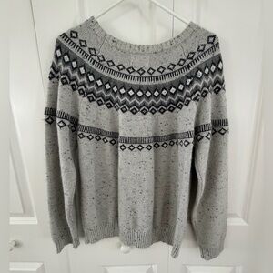 Chic gray sweater with intricate patterns. Ideal for cozy days.