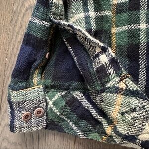 Stylish plaid shirt with green and cream pattern. Ideal for casual wear.