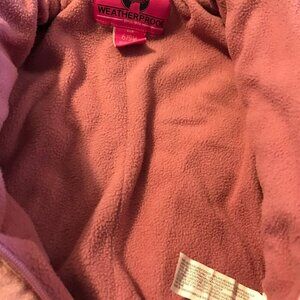 Weatherproof brand Infant quilted snow suit. Super soft inside and out. With faux fur around the hood. At wrist you can flip the material and make sure babies hands are covered in a mitten.