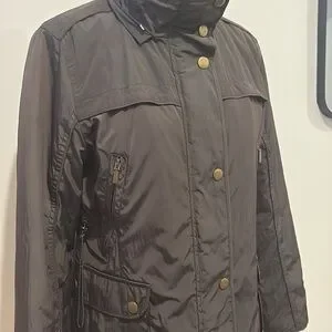 4 exterior pockets (2 zippered & 2 snapped); 1 interior breast pocket: drawstring waist
