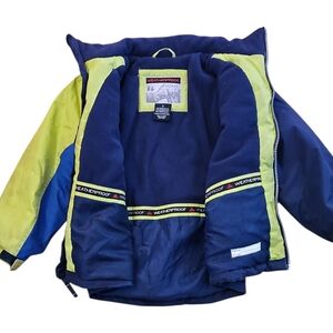 Winter jacket by Weatherproof. Vibrant blue and green colors. Warm and comfortable for kids.