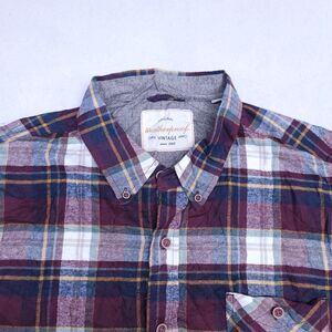 Weatherproof Madras Flannel Casual Button Up Shirt Mens Size XL Maroon Blue