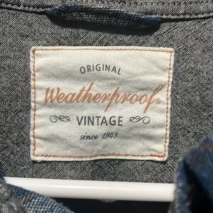Weatherproof Men Button Up Shirt Medium Blue Plaid Flannel Pocket Collar Casual