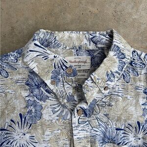 Weatherproof Mens Linen Shirt Blue White Floral Button Up Pocket NWOT