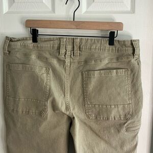 Stylish and versatile tan pants for men. Perfect for any occasion. Khaki colored denim material.