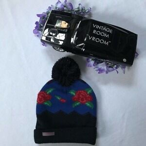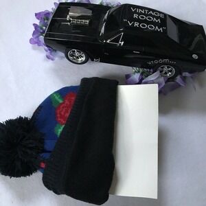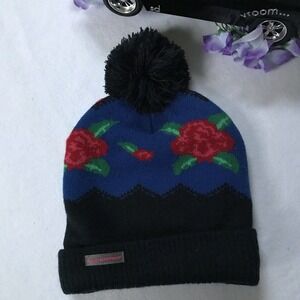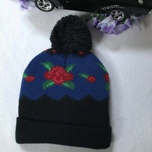 *Beanie - Pom-Pom, flower knitted design, brand logo on fold