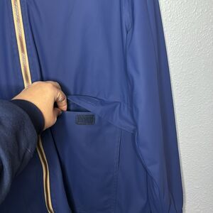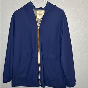 Weatherproof Navy Blue Hooded Kangaroo Pouch Pockets Rain Jacket Size Large