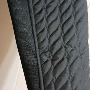 Lightweight but warm, ribbed stretchy material on the arms. Adjustable strap on the back to cinch at the waist. Silver snaps, sateen lining, slide pockets for hands.