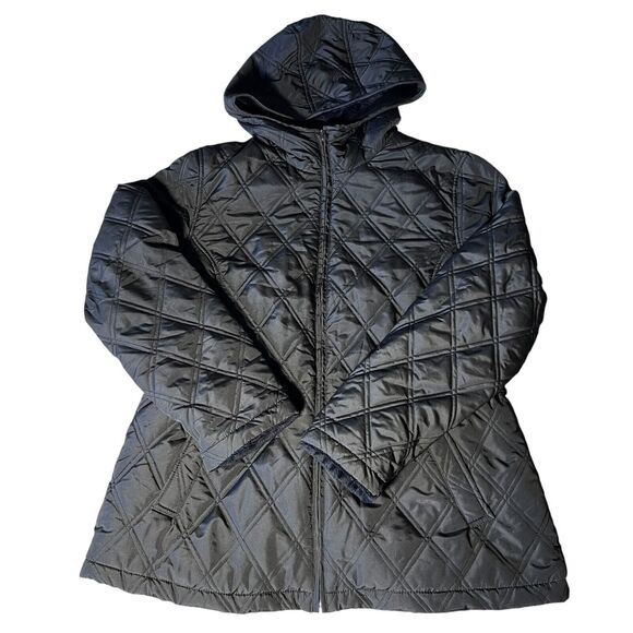 Weatherproof Quilted Jacket Hoodie Womens Size Large Black Cozy Warm Minimalist