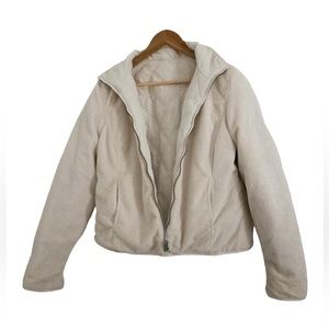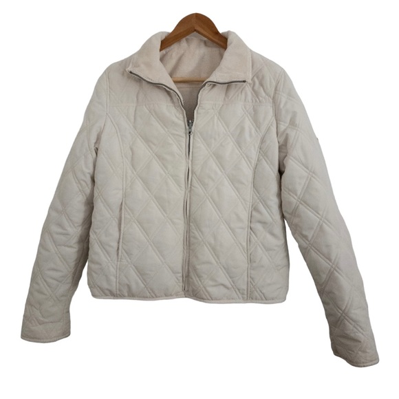 Super warm and soft. White on quilted side and cream on sherpa side