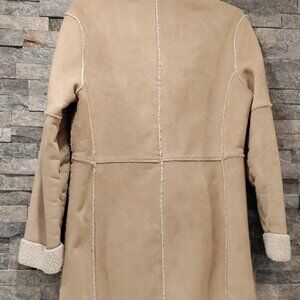 Weatherproof Shearling/Faux Suede Car Coat-SMALL-BEIGE/TAN and WHITE