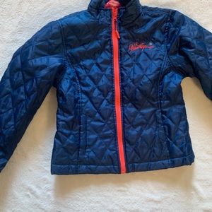 Kids snow jacket with liner that can be used for warmer weather. Used once a year for the last two years, so still in great condition. It's an orange-y color, so it's easy to see from a distance and appropriate for any gender.