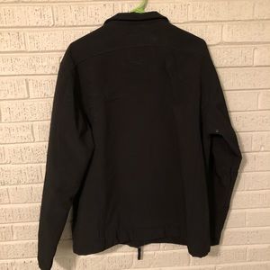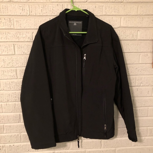 This jacket truly is “weatherproof”. It is very warm, waterproof, and blocks wind. It has 3 zippered pockets on the front (1 on the breast and 2 on the hips). It is in excellent used condition.