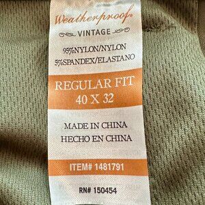 Weatherproof Tech Pant Men's Size 40 X 32 Green Regular Fit Water Repellent