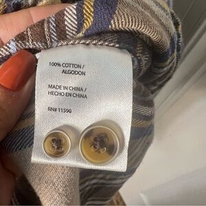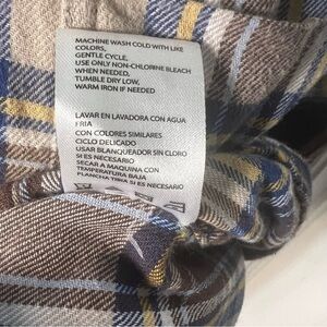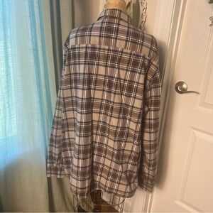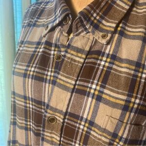 Weatherproof Vintage 100% cotton tans, browns, navy and cream flannel shirt. Super comfy. Men’s XXL but easily could be belted and used a tunic dress