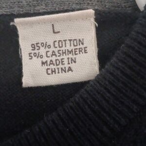 Weatherproof Vintage Black Cotton Cashmere V-Neck Sweater Men's L