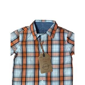 Weatherproof Vintage Button Up Polo Shirt Short Sleeves Plaid Orange Kids 2T NWT