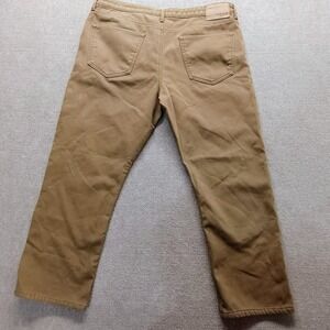 USED IN GOOD CONDITION - SOME LIGHT WEAR BUT NO STAINS. The Weatherproof Vintage Canvas Brown Men's Fleece Lined Pant in size 40x29 is a stylish and practical addition to any man's wardrobe. Made with fleece lining for added warmth, these pants feature a zip and button closure, 5-pocket design, and a regular fit. The brown color and khaki style make them versatile for outdoor or city wear, while the vintage appeal adds a touch of nostalgia to the overall look. Machine washable for easy care, these pants are both comfortable and practical for everyday wear.