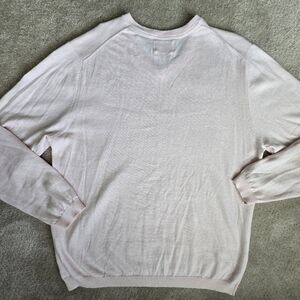 The Weatherproof Vintage Cashmere/ Cotton V Neck Pink Large sweater is a stylish and cozy addition to any woman's wardrobe. Made from a blend of cashmere and cotton, this knit sweater features a solid pink color, long sleeves, and a flattering V-neckline. Perfect for casual occasions in the fall, winter, or spring, this pullover sweater from Weatherproof is a timeless classic that can be dressed up or down for any event. Made in China, this sweater offers both quality and style for the modern woman.