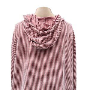 Tags: Hooded pullover, checkered top, Weatherproof hoodie, casual wear, red and white, cotton hoodie, relaxed fit, vintage style, oversized top, XL hoodie, kangaroo pocket, drawstring hood, women's fashion