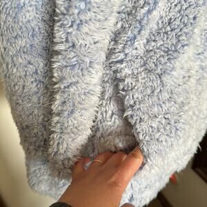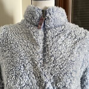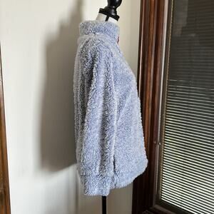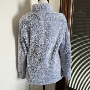 Blue/gray sherpa 1/4 zip pullover. Has 2 side pockets. In great used condition. So cozy! No flaws or damage to note.