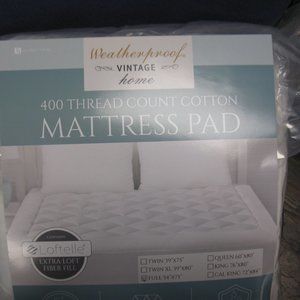 Weatherproof Vintage Home 400 Thread Count Cotton Mattress Pad, Full, NWT
