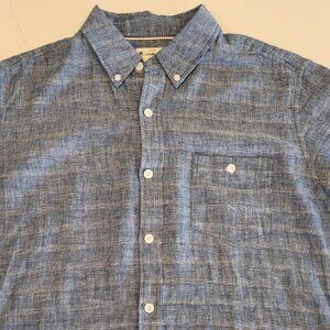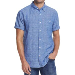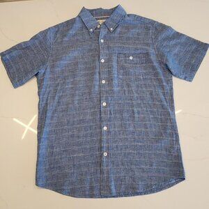Weatherproof Vintage Linen Cotton Sz M Woven Men Shirt short sleeve Blue Office