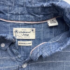 Item: Weatherproof Vintage Men Large Linen Shirt Summer Blue Short Sleeve Woven