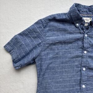 Weatherproof Vintage Men Large Linen Shirt Summer Blue Short Sleeve Woven