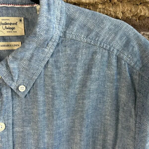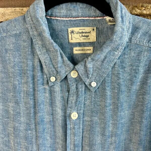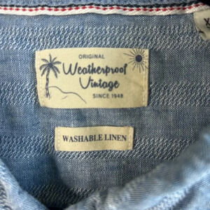 Weatherproof Vintage Men's Blue Washable Linen Short Sleeve Shirt Size XL