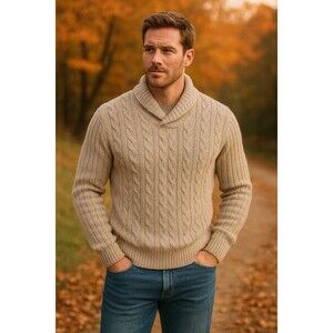 Weatherproof Vintage Mens Cable Fisherman Knit Shawl Collar Sweater Old Money XL