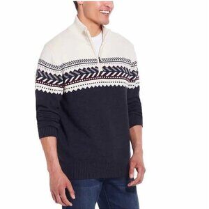 Weatherproof Vintage Men's Pullover Sweater Gray Fair Isle Size M Winter Cotton
