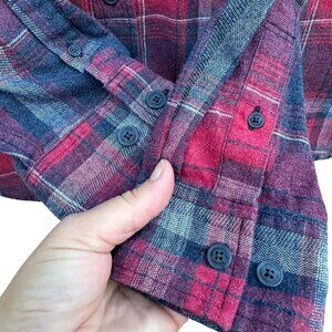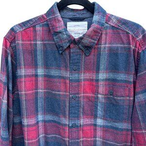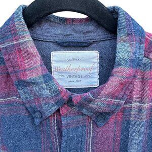 Weatherproof Vintage Mens Red Blue Plaid Flannel Long Sleeve Outdoor Grunge Shir